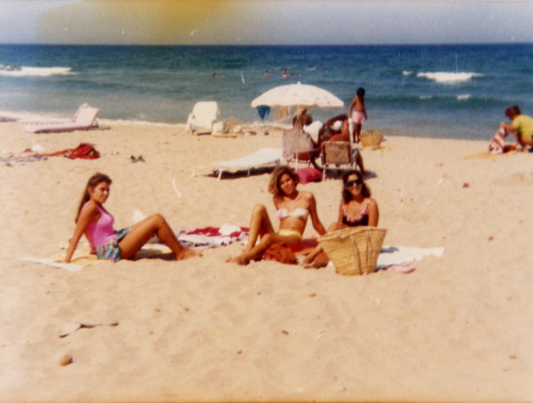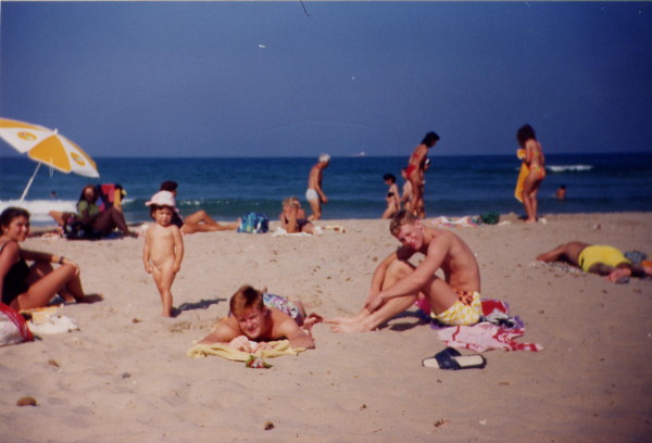 Mi sobrinita observando a los guiris lo blanco que son.